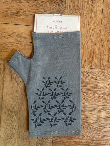 MERINO PRINTED GLOVELETS - Grey Marl with Grey Leaves