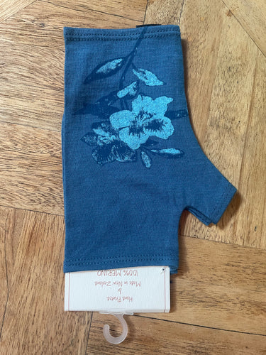 MERINO PRINTED GLOVELETS - Blue Marl with Blue Flower