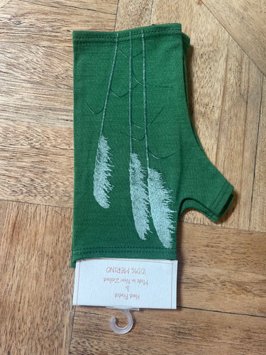 MERINO PRINTED GLOVELETS - Green with Grey Toi Toi